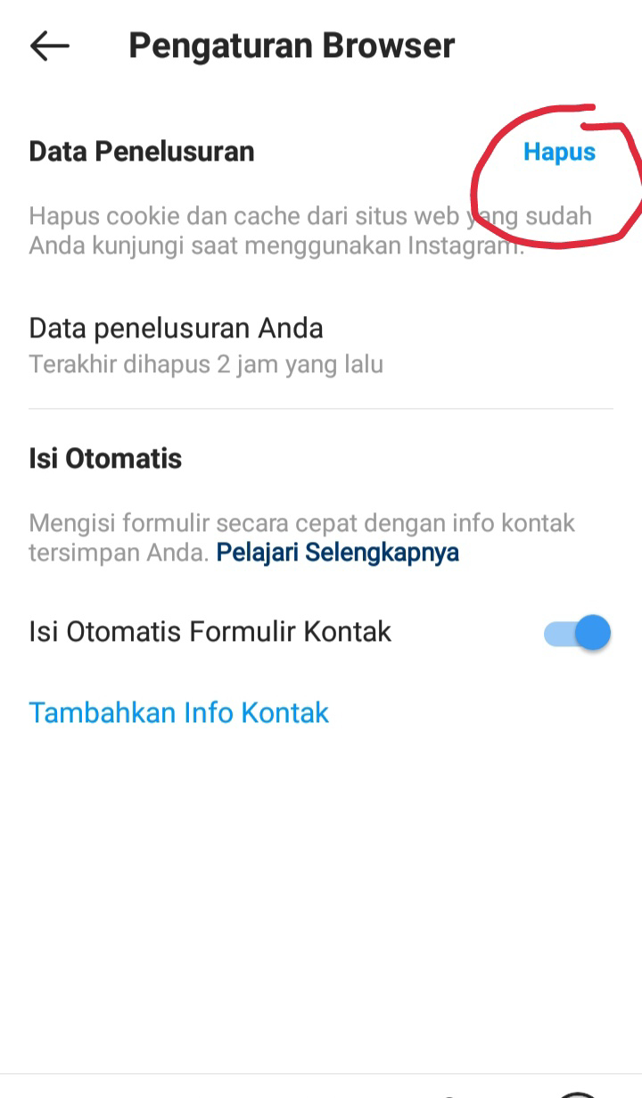 - Klik "Hapus" pada Data Penelusuran